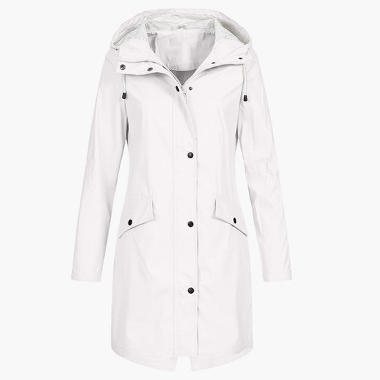 Women's Waterproof Windproof Rain Jacket – Modern Knee-Length Outdoor Coat